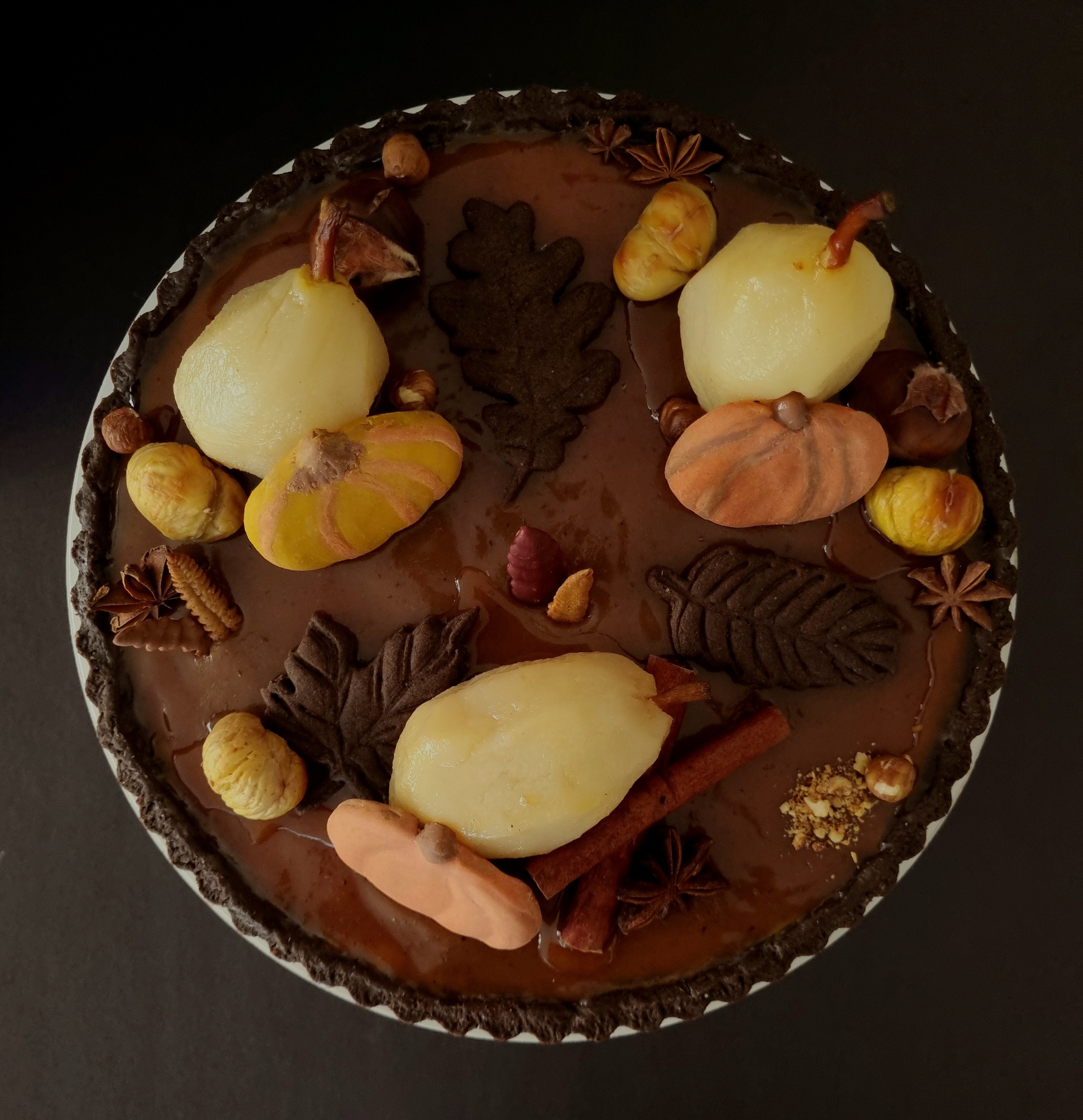 Tarçınlı Tart, Mascarpone Kreması, Kestane Sos, Poşe Armut ile