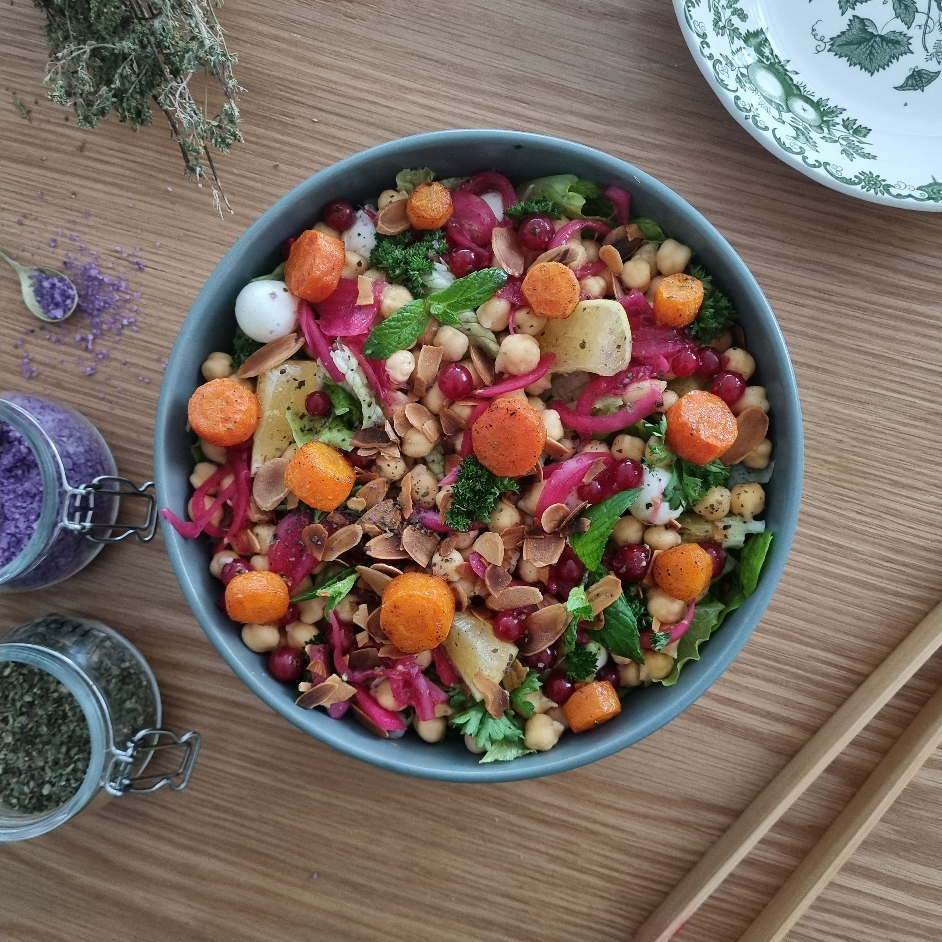 Adını her mevsimde bulunabilen sebzelerden alan bu reçeteyi çok spontane bir araya gelen malzemelerden oluşturdum. Her biri bir araya geldiğinde ise tatlı, acı, ekşi ve tuzlu aromalar bir araya toplandı! her bir malzemenin yerine evinizde hali hazırda bulunan farklı malzemeler ile siz de farklı aromaları bir araya getirebilirsiniz!