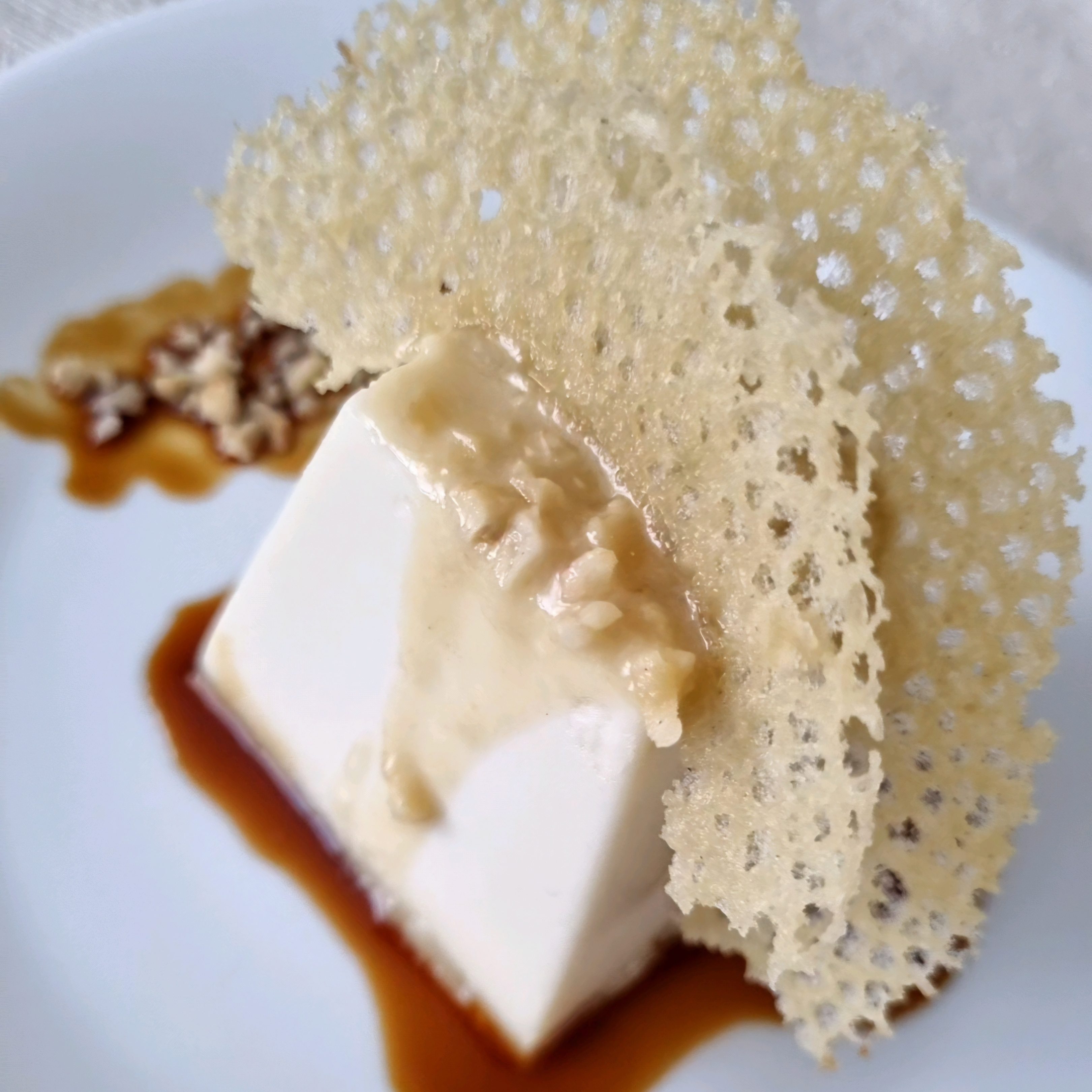 - Tahinli tuile malzemelerini derin bir kasede iyice karıştırıp homojen bir sıvı elde ediyoruz. Çok kızgın teflon tavaya bir tatlı ya da yemek kaşığı kadar döküyoruz. Karışım piştikçe gözenekli bir şekle geldiğinde nazikçe peçete üstüne alarak soğumaya bırakıyoruz. Tuile’i dilerseniz bütün dilerseniz de kırarak dekor olarak kullanabilirsiniz.
